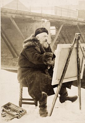 Ледяные зимние пейзажи, необъятное море, яркую осень и восхитительно прозрачные летние деньки, когда самый воздух, кажется, дрожит от зноя, можно видеть на его картинах. Он любит жемчужно-серые, палевые, голубовато-зеленые тона. Освещение почти всегда неяркое — пасмурный или туманный день, сгустившиеся сумерки или ночной мрак, чуть разгоняемый светом из окон.
