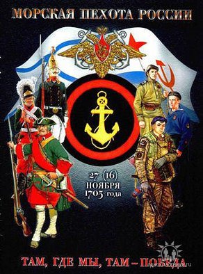 В память указа Петра I о создании «полка морских солдат» 27 ноября отмечается как День морской пехоты России.