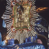 Во время крестного хода в дни пребывания иконы в Екатеринбурге, лето 2001 г., от чудотворной иконы исходит Божественное огненное пламя.