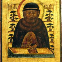Преподобный Максим Грек после получения блестящего европейского образования и многих путешествий по Европе прибыл на Афон и принял иночество в Ватопедской обители, где с увлечением изучал древние рукописи. По ходатайству князя Василия Иоанновича прибыл в Россию начал заниматься переводом на церковно-славянский язык греческих церковно-богослужебных книг. Он писал апологетические и нравоучительные письма против магометан, папизма, язычников, также толкования святителя Иоанна Златоуста на Евангелия от Матфея и Иоанна.