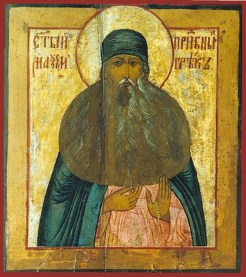 Преподобный Максим Грек после получения блестящего европейского образования и многих путешествий по Европе прибыл на Афон и принял иночество в Ватопедской обители, где с увлечением изучал древние рукописи. По ходатайству князя Василия Иоанновича прибыл в Россию начал заниматься переводом на церковно-славянский язык греческих церковно-богослужебных книг. Он писал апологетические и нравоучительные письма против магометан, папизма, язычников, также толкования святителя Иоанна Златоуста на Евангелия от Матфея и Иоанна.