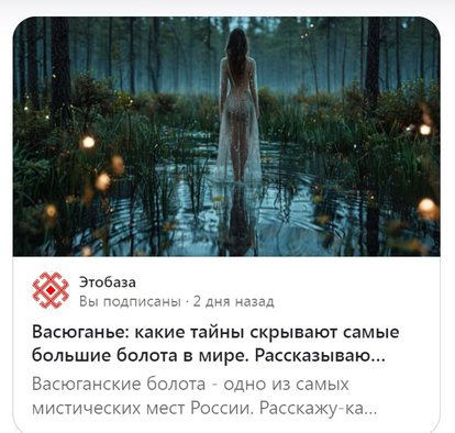 Я был на Васюганских болотах. Могу гарантировать - там точно нет голых баб в пеньюаре, их за 5 минут сжирает гнус...