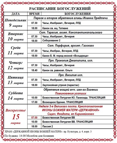 ❤15 марта - престольный праздник. ❗Обратите внимание, ранняя литургия в 7.00. Если вы планируете на раннюю службу и у вас есть возможность остаться, поучаствуйте во встрече митрополита на улице.