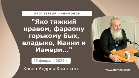 🌿 Видеопроповеди прот.Сергия Филимонова на покаянном каноне Андрея Критского в среду и четверг первой недели Великого поста 25 и 26 февраля 2026 г.