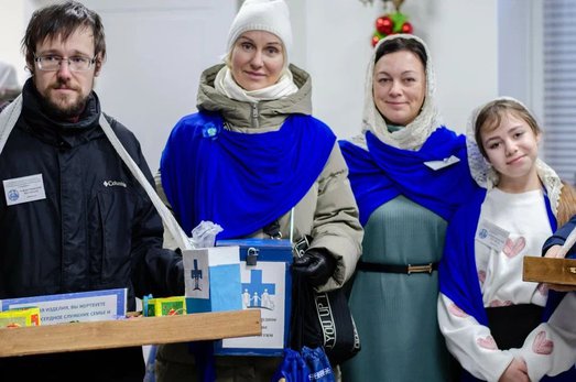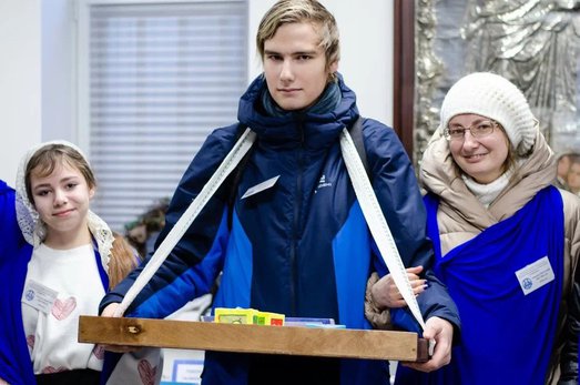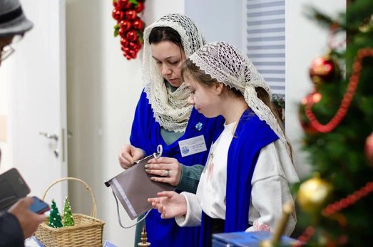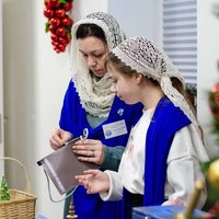 На территории храма дамы в синих палантинах и их помощники принимали пожертвования на служение семье и детям. За пожертвование получали синий цветочек – давняя традиция наших благотворительных базаров, существовавшая еще в конце 19 - начале 20 вв.