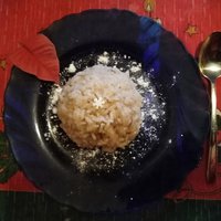 Для сервировки как на фото рис сначала кладем в чашку или пиалку, накрываем тарелкой и переворачиваем.