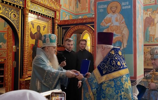Настоятелю был вручен наперсный крест с украшениями в связи с 30-летием диаконской хиротонии.