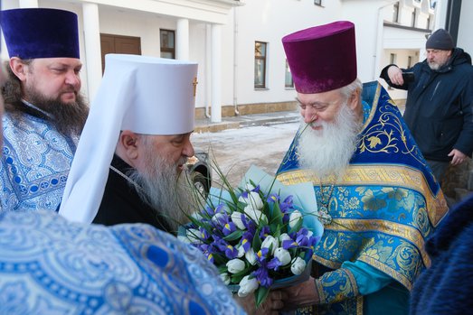 Отец Сергий поблагодарил правящего архиерея и подарил ему ковчежец с частицей гроба Божией Матери, полученный из Горненского монастыря.
