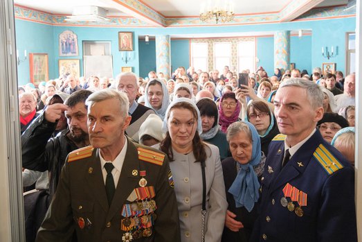 "Поздравляю вас с престольным праздником, памятью иконы Божией Матери "Державной", сегодня также день поминовения усопших и завершение второй седмицы Великого поста, - сказал владыка в проповеди. - Россия - удел Богородицы, наша страна находится под Ее покровом. Не много в мире найдется мест, где Она так почитается, как в России, где множество чудотворных икон, прославленных в истории Церкви. В начале двадцатого века был прославлен и образ "Державная", он находился в селе Коломенском, в Вознесенском храме в заброшенном состоянии. Божия Матерь знает, где находятся Ее иконы, и велела обрести этот прекрасный образ. Когда его нашли, увидели, что Богоматерь изображена как Царица. Времена тогда настали тяжелые, казалось, что всему конец, приходит антихрист, близится завершение истории. Но нет - Матерь Божия взяла в Свои руки правление Россией. Верующие это почувствовали и укрепились в вере. Они поняли, что испытания пришли не случайно, а посланы для очищения страны и Церкви от того, что не войдет в Царство Небесное".