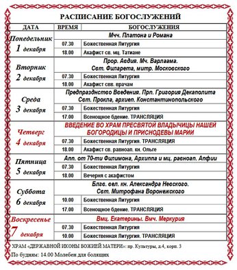 На следующей неделе 4 декабря - Введение во храм Пресвятой Богородицы