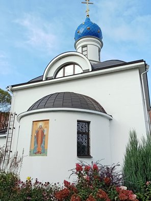 ✅За лето отремонтированы карнизы стен храма Державной иконы Божией Матери. Повешена икона св. Иннокентия на алтарную часть снаружи храма в честь этого святого.