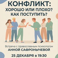 Шанс получить не только профессиональный взгляд психолога, но и понять, как на конфликт смотрит вера. Будем разбирать примеры и искать практические решения.