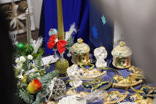 🎄🎁На ярмарке ощущалась атмосфера праздника. На столах - настоящее разнообразие чудесных изделий, созданных золотыми руками наших прихожан и сестер благотворительной мастерской. Благотворительная мастерская проводит занятия и для детей, их изделия также были представлены на ярмарке. Здесь можно было найти изящный новогодний декор для интерьера из бумажной лозы, красивые сувениры, вязанные крючком рождественские украшения, добрые игрушки из фетра и войлока, выполненные в технике декупажа мерцающие шары, оригинальные брелки и магниты. Каждое изделие было сделано с любовью и усердием - ярмарка стала настоящим вернисажем талантов.