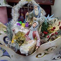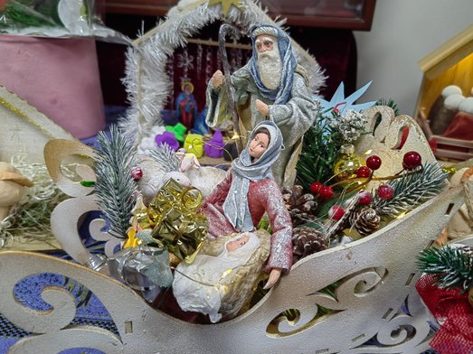 💗 1 место - вертеп, выполненный семьями Черниковых и Гурбановых. В композиции использованы ватные игрушки, сделанные по дореволюционной технологии.