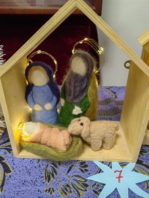 Вертеп семьи Васильевых (Андрей, Евгения, Ксения, София, Матвей, Лука) с симпатичными уютными фигурками из валяной шерсти