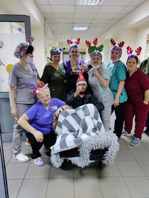 Сестры продолжают непрерывно трудиться. В зимний период добавляются раненые с обморожениями. 3-4 раза в неделю выходит группа добровольцев-реабилитологов, делают массаж и упражнения для скорейшего восстановления. Стоматологи еженедельно проводят благотворительный прием бойцов. В декабре для ребят организовали два групповых занятия с психологами. Подологи и парикмахеры всех желающих подготовили к праздникам.