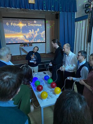 ⏱В программу были включены интеллектуальные игры, в том числе «Брейн-ринг» на темы «Рождество Христово» и «Новый год». После такой интеллектуальной разминки семья Земляковых провела игру "Что? Где? Когда?" с настоящими атрибутами легендарной игры. Вопросы из разных городов мира касались Рождества Христова. Победители получили призы и памятные книги с дарственной надписью знаменитого игрока Александра Друзя.