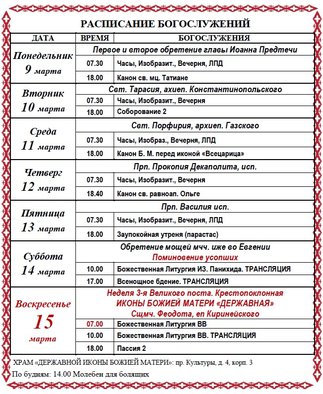 ❤15 марта - престольный праздник. ❗Обратите внимание, ранняя литургия в 7.00. Если вы планируете на раннюю службу и у вас есть возможность остаться, поучаствуйте во встрече митрополита на улице.