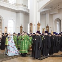 После поклонения святыням архиереев и служащего духовенства, началось совершение Божественной литургии.