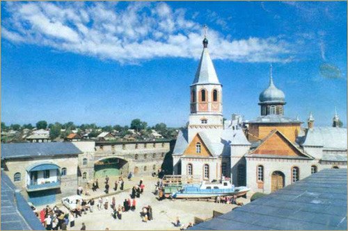 На фоне низкорослых деревенских домишек монастырь выглядит очень внушительно и величественно. Купола храма видны за несколько километров.