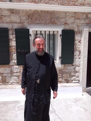 Думаю, многие, побывавшие хоть раз на Божественной Литургии, которую служит отец Поликарп, помнят его сильный громкий всеобъемлющий голос, который, без сомнения, всегда слышит Небесное Царство. Со второй декады апреля и до неглубокой осени – самое оживленное время на острове Корфу. Около полугода схиархимандрит Поликарп практически ежедневно принимает в своём монастыре паломников. Порой, ежечасно. Люди, знающие батюшку, стремятся вернуться к нему вновь и вновь. Отец Поликарп всегда в Божьих делах. Он принимает участие в ежегодном переобувании мощей святителя Спиридона Тримифунтского. Мне кажется, что душа схиархимандрита Поликарпа всегда незримо предстоит пред Престолом Божьим, при том, что сам батюшка живёт вовсе не в Небесной обители, а ходит вместе с нами по обычным улицам, мимо обычных домов, хотя и необычайно красивых и по-южному ярких. Бывают ли у него пустынные минуты? Думаю, нет. Даже если он просто сидит и разговаривает с людьми или срывает на монастырском газоне базилик, чтобы подарить букет пришедшей на территорию монастыря девушке, мне кажется, он трудится всегда. Наглядно, молвно или безмолвно рассеивает в жизнь людей зёрна доброты. Ни разу не видела я, чтобы отец Поликарп показывал как-либо свою исключительность или особую приближенность к Богу. Он разговаривает на равных, а, главное, без сложных богословских рассуждений, всё доступно и по-человечески, как будто он друг, а не схиархимандрит. И не важно общается ли он с тобой используя весьма ограниченный запас английских и русских слов, или прибегает к помощи переводчика, все сказанное им находит неожиданный отклик в твоей душе, ты понимаешь, что адресовано это могло быть только тебе и, что именно для тебя это сейчас так важно. Так бывает, когда одно сказанное нужное слово навсегда меняет жизнь человека, указывает ему верный путь. Любит батюшка в своих беседах нередко вспоминать старца Паисия Святогорца, того самого с которым 6 лет прожил на Афонской горе. Кстати, на канонизацию старца схиархимандрит Поликарп приезжал специально в Россию. Прошло немного времени с момента кончины старца Паисия и отец Поликарп начал замечать чудеса, происходившие с вещами святого в монастыре Кассопитры. Так, хватило одного прикосновения частицы одеяния старца Паисия ко лбу человека, находившегося в коме, как тот незамедлительно пришёл в сознание.
