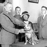 7. На одном фото героический пес получает награду из рук генерала Джона Першинга. Новоиспеченный сержант выглядит очень солидно.