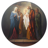 В то время жил в Иерусалиме праведный старец Симеон. Ему было откровение, что он не умрет, пока не увидит Христа Спасителя. По внушению свыше, благочестивый старец пришел в храм в то время, когда Пресвятая Богородица и праведный Иосиф принесли туда Младенца Иисуса, чтобы исполнить законный обряд. Богоприимец Симеон взял Богомладенца на руки, и благословив Бога, изрек пророчество о Спасителе мира: "Ныне отпускаешь раба Твоего, Владыка, по слову Твоему с миром, ибо видели очи мои спасение Твое, которое Ты уготовал пред лицем всех народов, свет к просвещению язычников и славу народа Твоего Израиля".