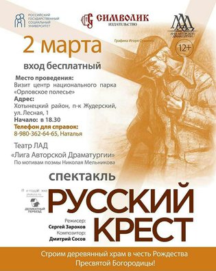 ✍🏻Приглашаем вас в Орловское Полесье посетить спектакль "Русский крест" по пьесе Николая Мельникова от театра ЛАД (Лига Авторской Драматургии).
