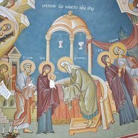 В Сретении Господа окружают, с одной стороны, праведность, чающая спасение не в себе, - Симеон, и строгая в посте и молитвах жизнь, оживляемая верою, - Анна; с другой - чистота существенная, всесторонняя и непоколебимая - Дева Богоматерь, и смиренная, молчаливая покорность и преданность воле Божией - Иосиф Обручник.