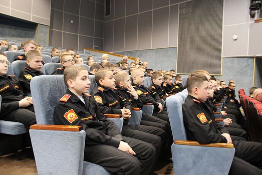 Центральным событием для ребят стала презентация клипа на песню «Кадетка». Перед суворовцами выступили автор слов, выпускник 1992 года Дмитрий Рычков, и исполнитель, выпускник 1996 года Артём Неврединов.