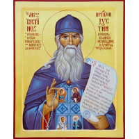 Православия сладость, нектар премудрости, отче преподобне, излиял еси в сердца верных яко богатство: житием своим и учением показался еси живая книга Духа, Иустине Богомудре, моли Христа Бога Логоса да оло́госит тя почитающих.