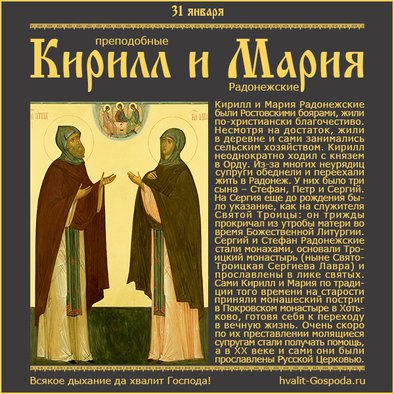 31 января – память преподобных Кирилла и Марии Радонежских