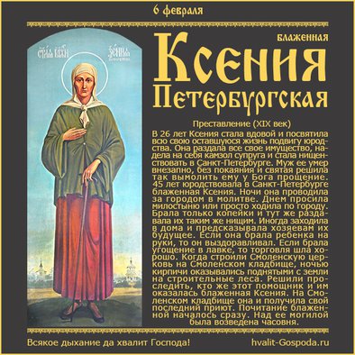 6 февраля – память блаженной Ксении Петербургской (XIX) | Всякое дыхание да хвалит Господа!