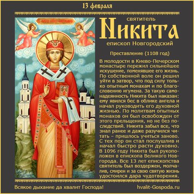 13 февраля – память святителя Никиты, епископа Новгородского (1108 год) | Всякое дыхание да хвалит Господа!