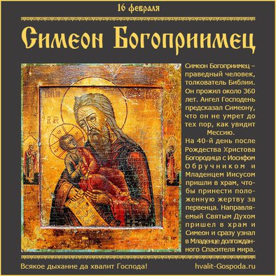 16 февраля – Попразднство Сретения Господня. Правв. Симеона Богоприимца и Анны пророчицы | Всякое дыхание да хвалит Господа!