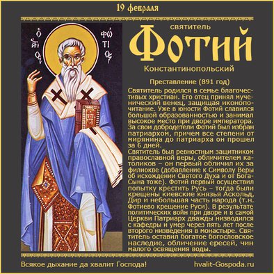 19 февраля – память свт. Фотия, Патриарха Константинопольского (891 год) | Всякое дыхание да хвалит Господа!