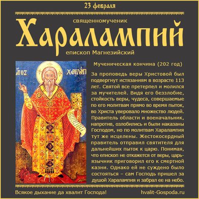 23 февраля – память священномученика Харалампия, епископа Магнезийского (202 год) | Всякое дыхание да хвалит Господа!