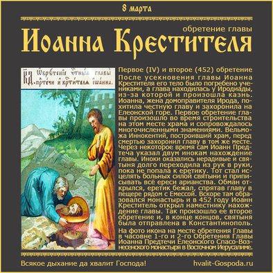 8 марта – первое (IV) и второе (452) обретение главы Иоанна Крестителя