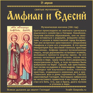 15 апреля – память святых братьев-мучеников Амфиана и Едесия (306 г.) | Всякое дыхание да хвалит Господа!