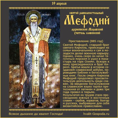 19 апреля – память святого равноапостольного Мефодия, архиепископа Моравского, учителя словенского (885 год) | Всякое дыхание да хвалит Господа!
