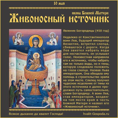 10 мая – икона Божией Матери «Живоносный источник»