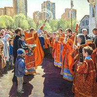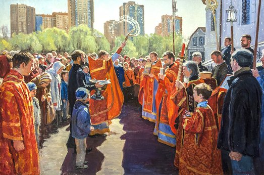Иллюстрация: Николай Акимов. Крестный ход на Пасху.