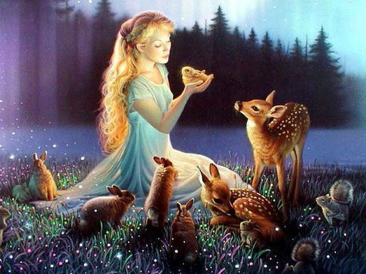 Оленю, у которого слезились глаза, она промыла их водой из кувшина, а он из благодарности стал лизать ее лицо. Тогда пропали все следы от оспы, глаза заблестели, а вокруг них выросли пушистые ресницы.