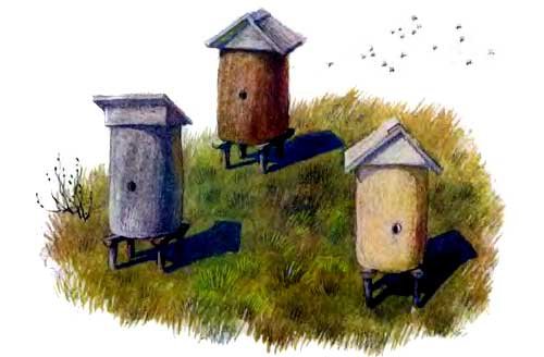Видят пчёлки, что солнышко светит ярко, что везде светло и тепло, выбрались они из улья и по-летели к яблоньке: