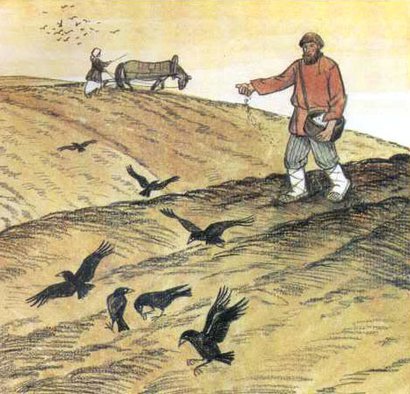 Видела Таня, как отец её горстями разбрасывал по полю маленькие блестящие зёрна, и спрашивает: