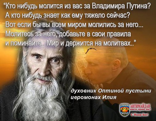 Кирилл, читая ваши комментарии, приходишь к выводу, что вы человек либеральных взглядов. Потому говорить с вами о политике нашего президента, которого вы презираете не имеет смысла. Патриотизма своего государства в вас не видно, потому и христианство у вас с каким-то левым уклоном. Ваши убеждения противоречат большинству присутствующих на этом сайте. Отец Иона для нас авторитет и его слова - не профанация, а призыв к действию во спасение себя, страны, церкви. Истинный христианин обязан молиться о всех людях, считая себя ниже всех по смирению своему. А у вас только ненависть к личностям, которые не левого толка. Не вижу смысла спорить с человеком взгляды которого утверждены и не ищут истины в споре. Мы придерживаемся разнополярных взглядов, потому о политике на Донбассе, который у меня под носом, вовсе молчу. У вас виноват во всем Путин (без аргументов), а запад гладкий и пушистый, т.е. все перевернуто с ног на голову.