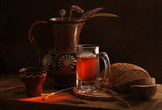 1 кг ржаного хлеба, 6 л воды, 20 г дрожжей, 30 г сахара, 50 г изюма.