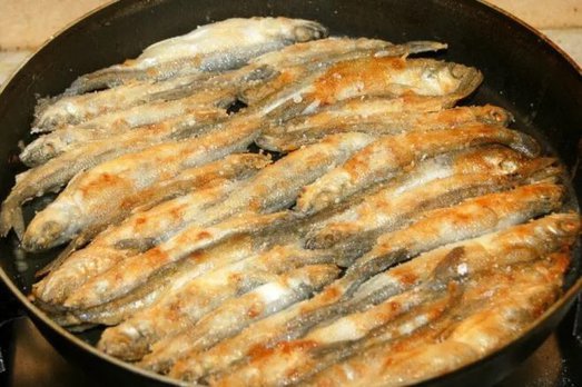 Взять рыбку средней величины и мелкую (она и подешевле). Промыть, посолить, обвалять в муке и жарить в большой количестве постного масла. Мелкую рыбку можно не потрошить. Поэтому получается быстро и при этом очень вкусно.