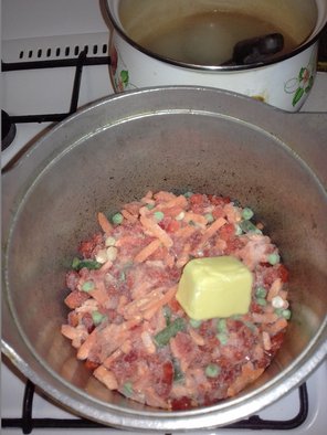 * Добавить к растаявшей и потушившейся немного "Мексиканской смеси", положив кусочек сливочного масла.