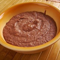 Шаг 4. Пюрировать фасоль блендером, постепенно добавляйте жидкость из банки и масло, доводя фасоль до нужной, пастообразной консистенции.